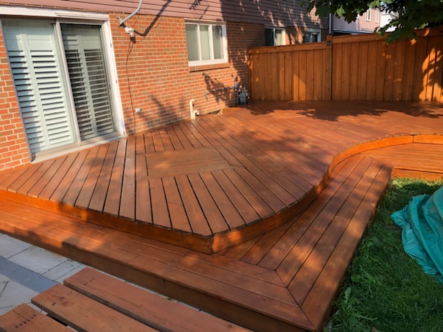 A backyard renovation in Aurora involved staining wooden fences and a deck with UV-protective sealant. This enhanced the natural look of the wood while preventing fading and cracking caused by direct sunlight.